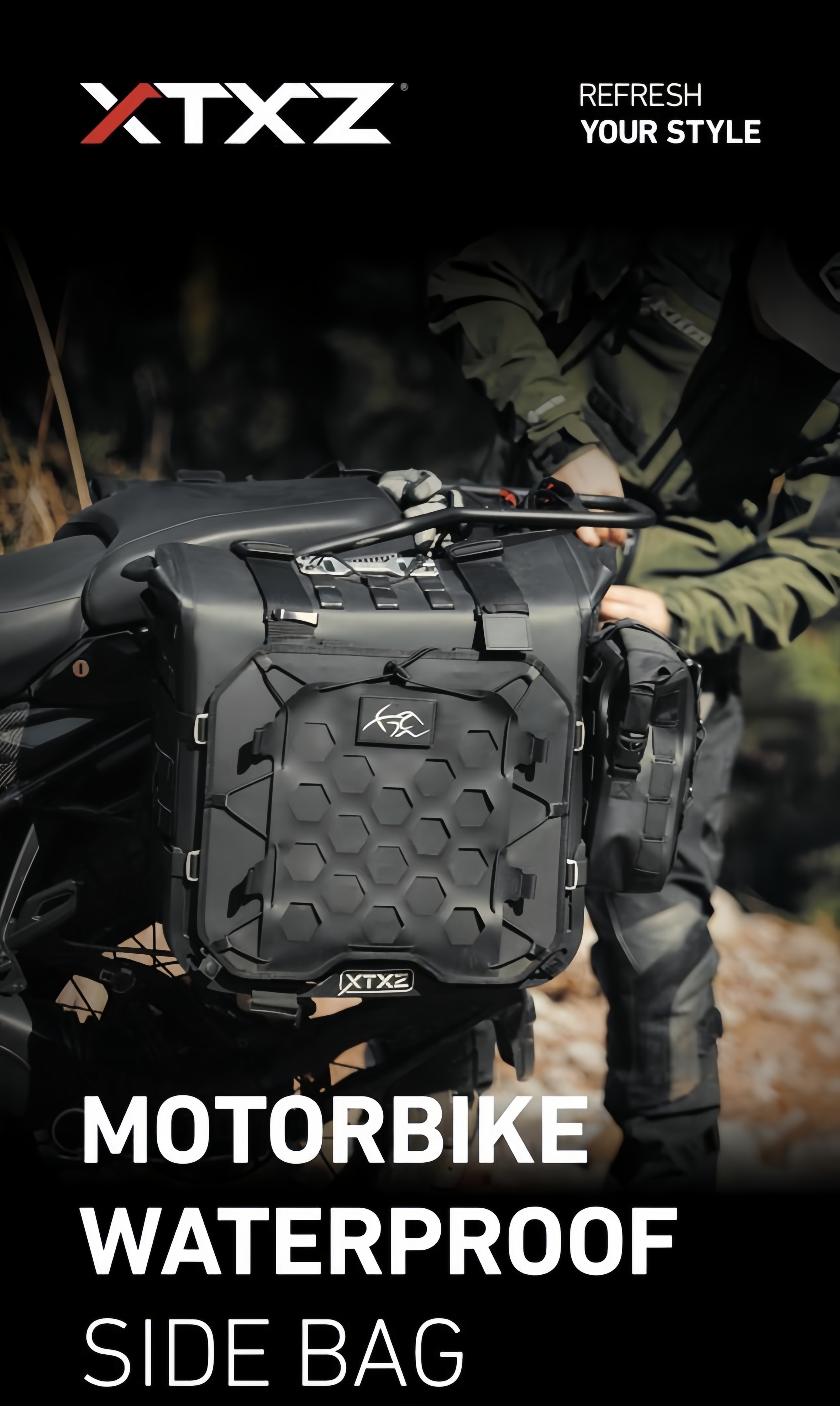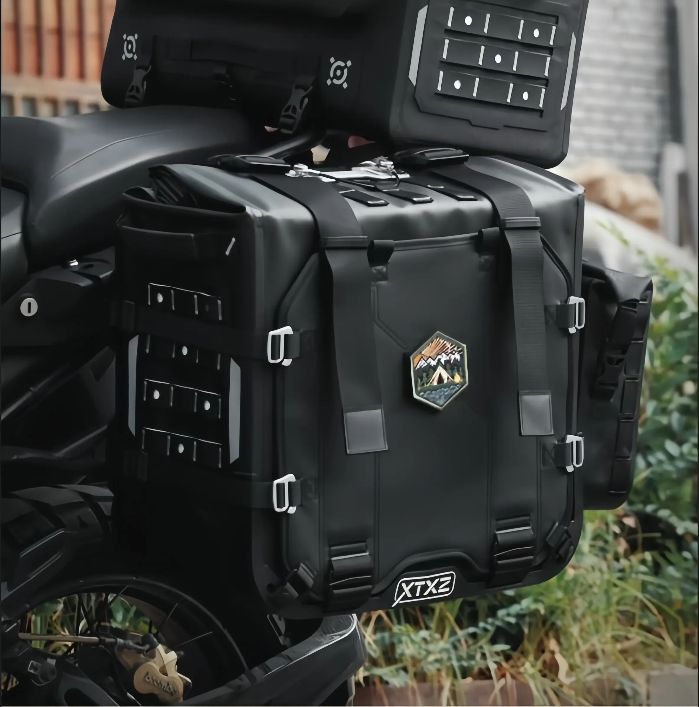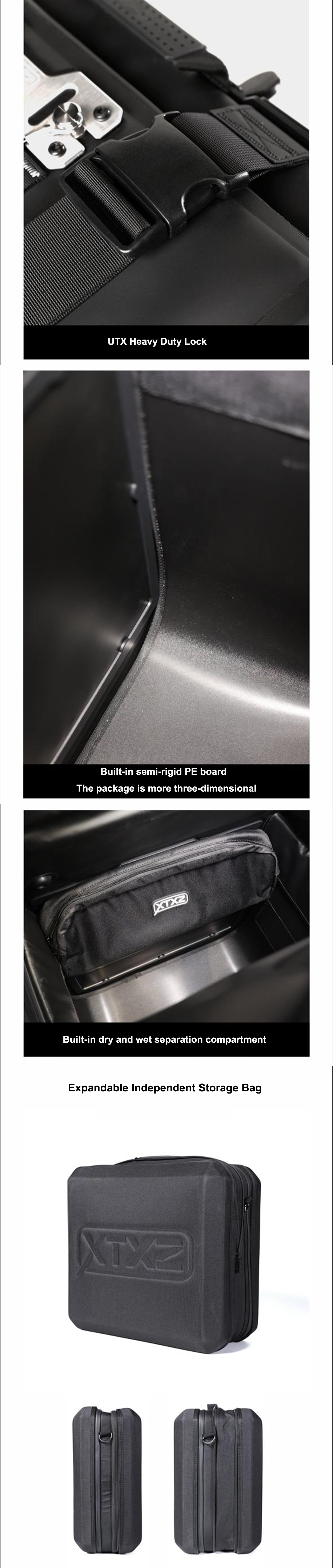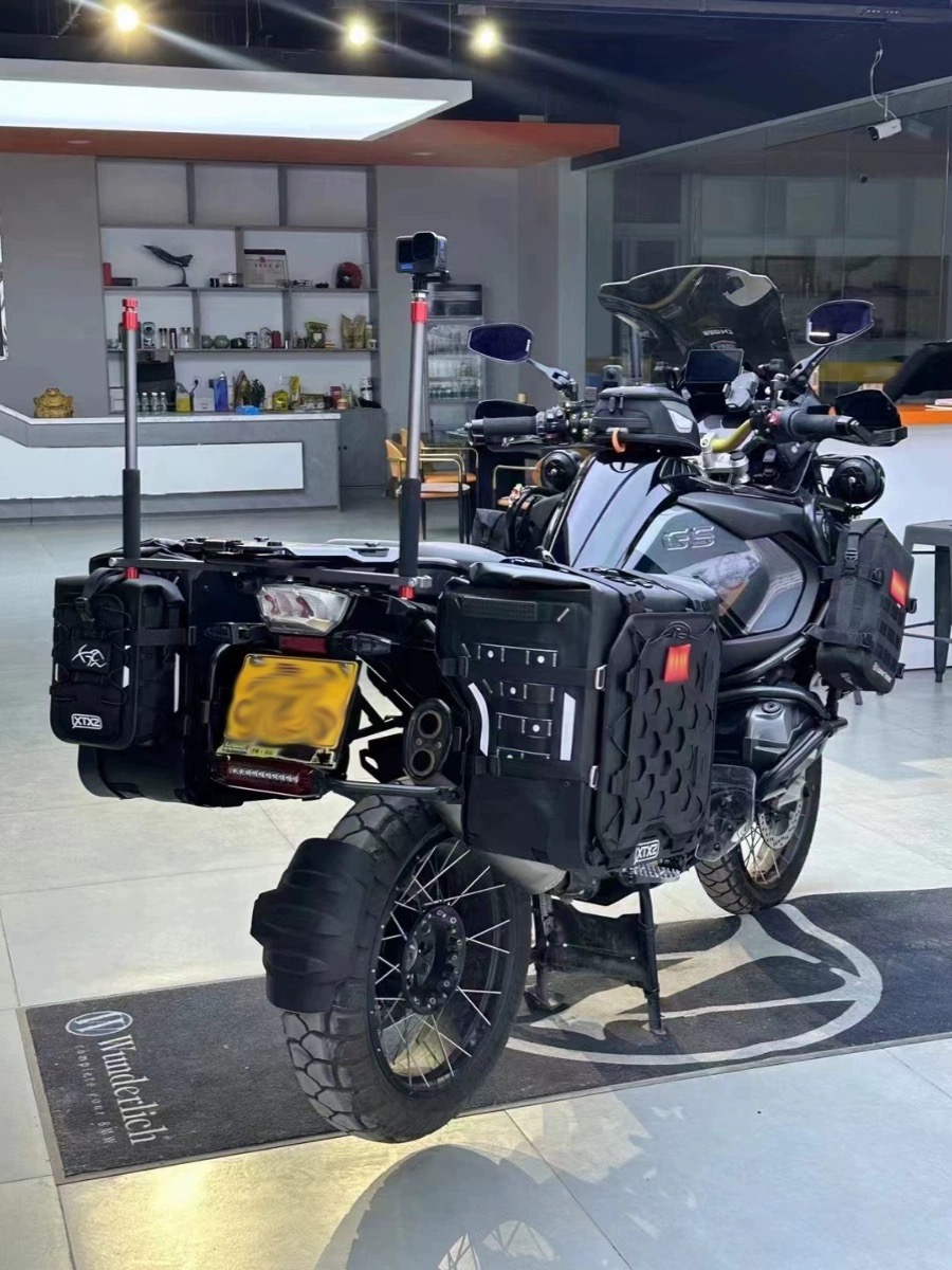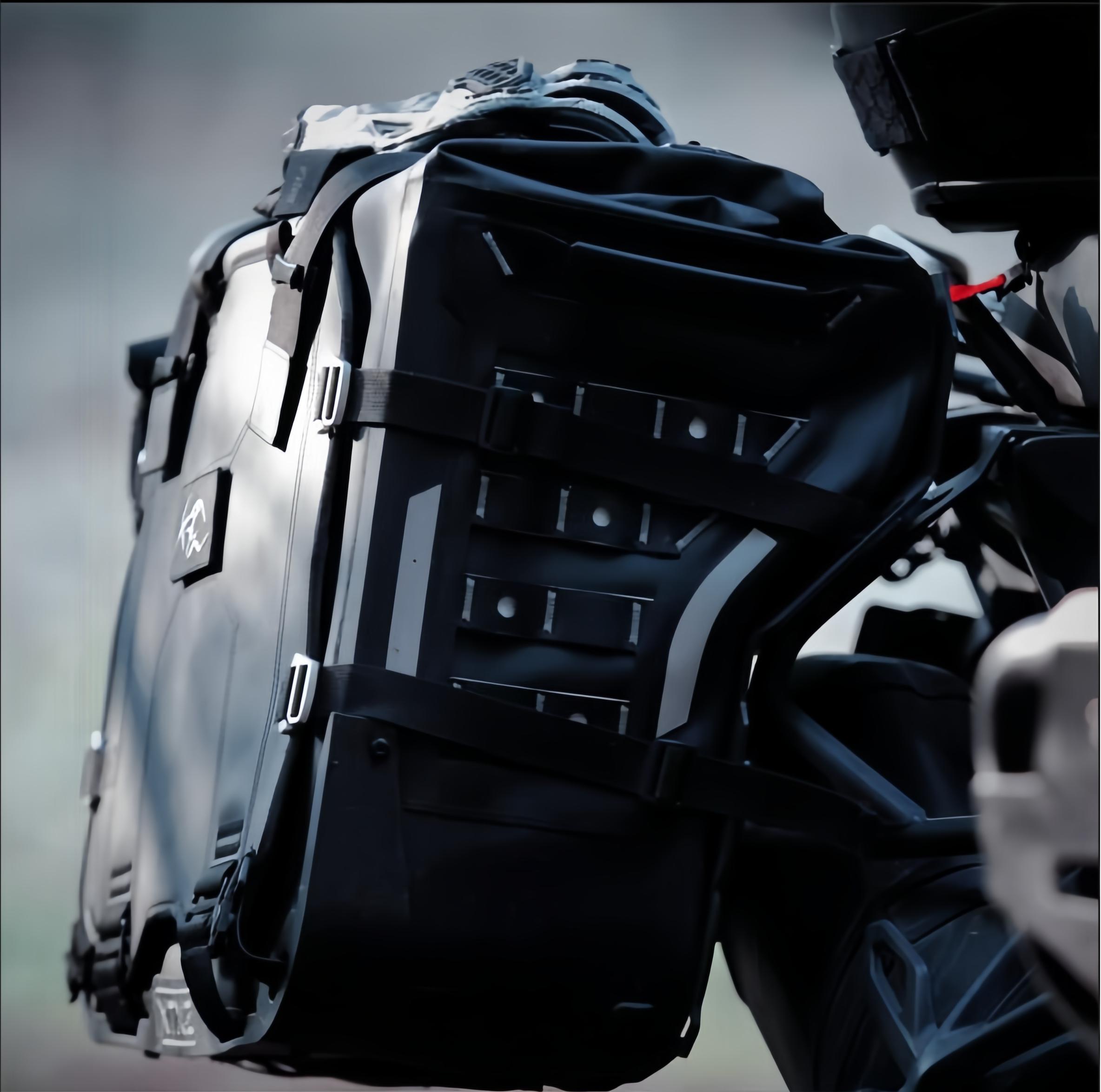This is a motorcycle sidebag designed specifically for ADV, with volumes of 42L, 38L, and 36L. It is equipped with a unique exhaust structure and anti-theft quick-release lock system, a simple folding magnetic bag opening, a built-in suitcase for easy storage, and an A/B interchangeable front decorative guard plate. It is a unique product designed for long-distance motorcycle travel.