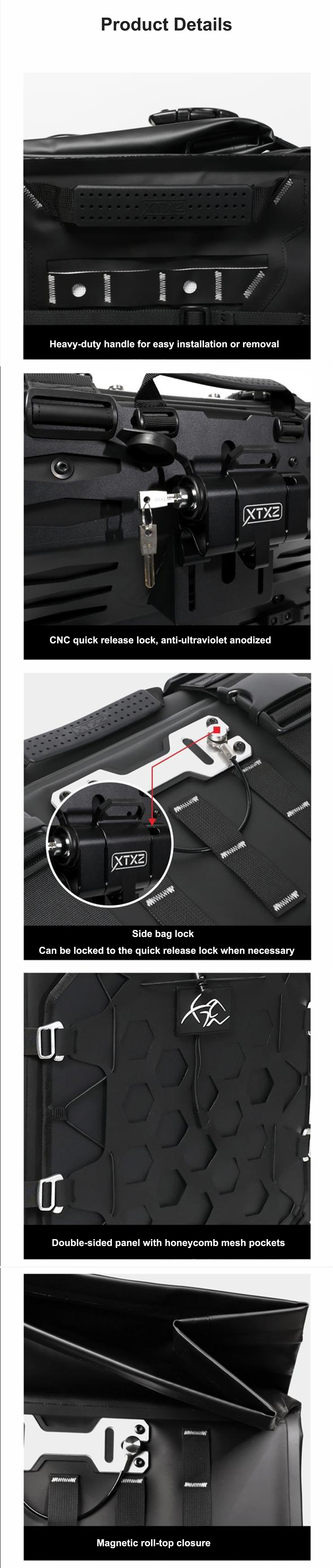 •Suitable for most ADV models, the lock position can be adjusted according to the side bag bracket of different models