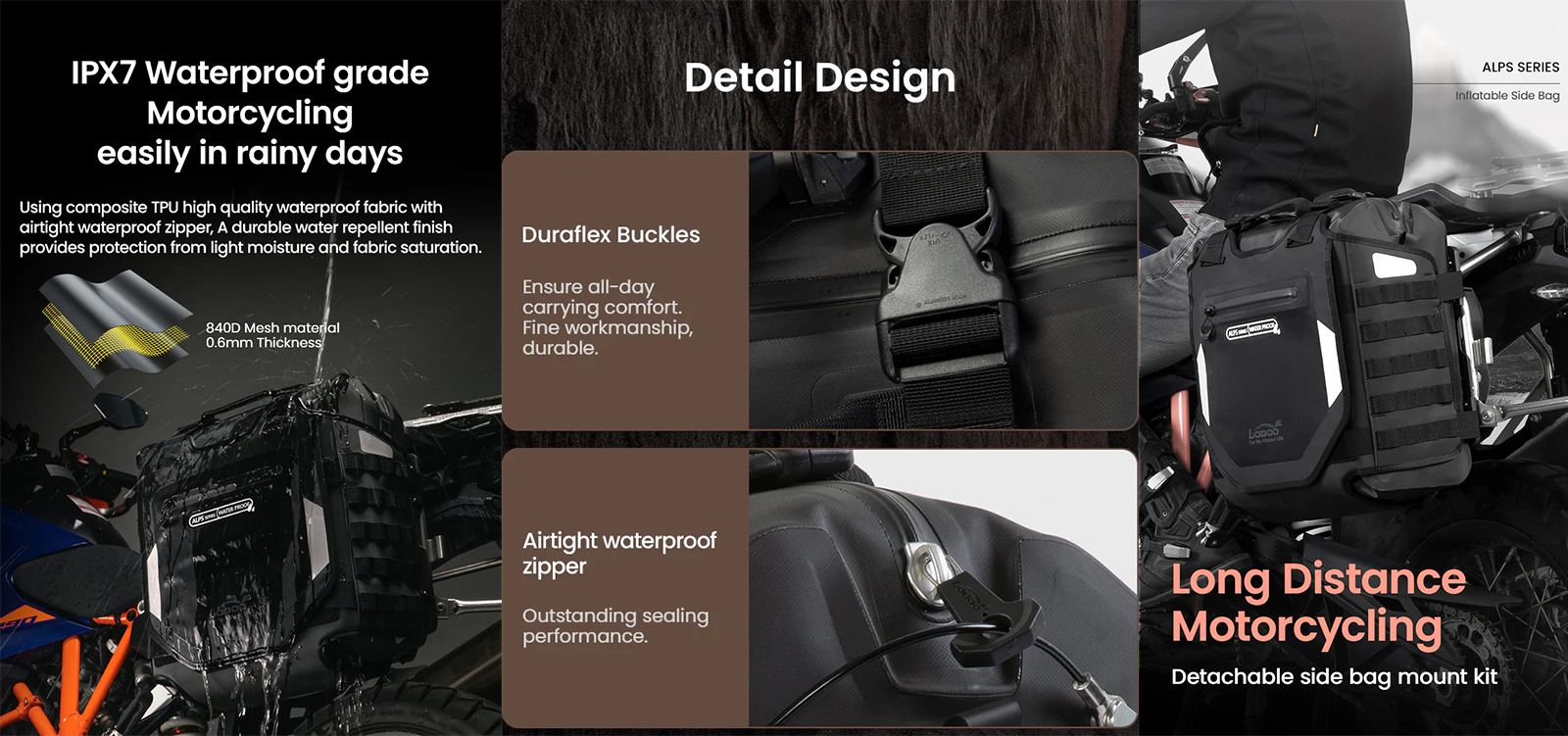" Experience the ultimate combination of safety, convenience, and versatility with LOBOO's innovative waterproof edge bag, engineered for riders who demand the best. "