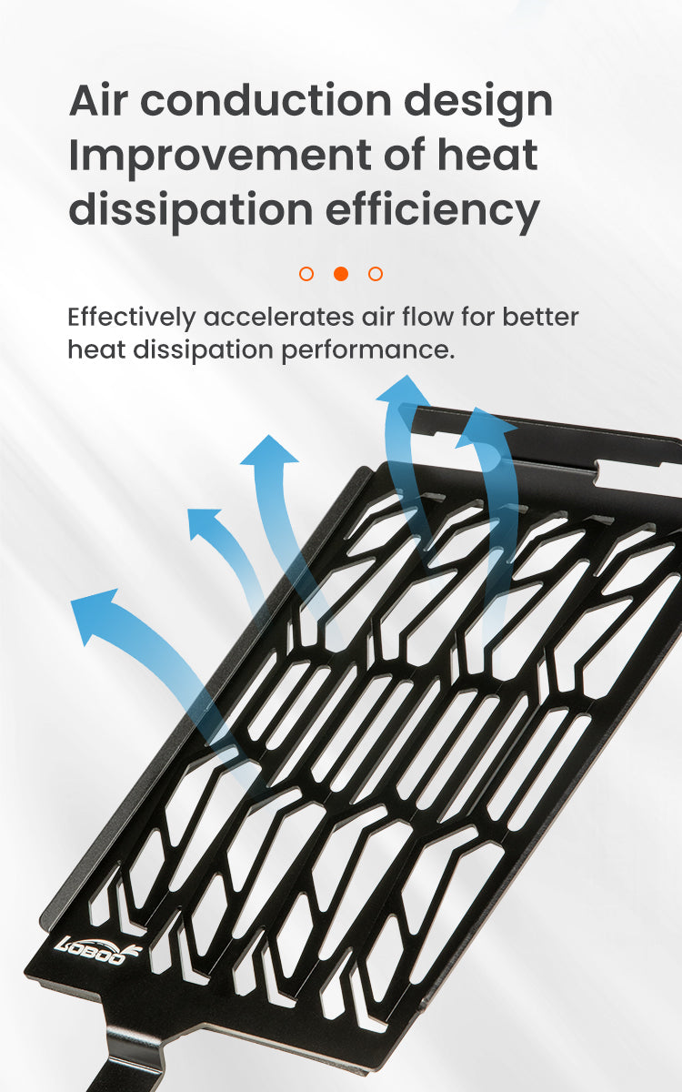 Air conduction design Improvement of heat dissipation efficiency Effectively accelerates air flow for better heat dissipation performance.