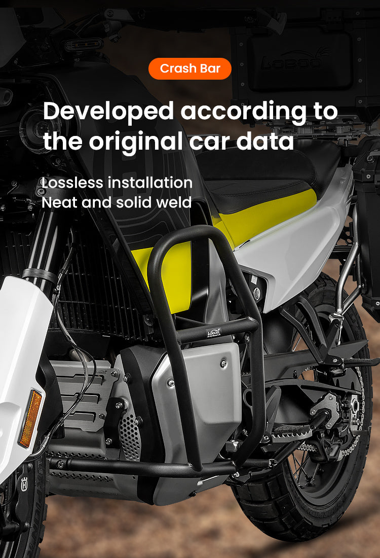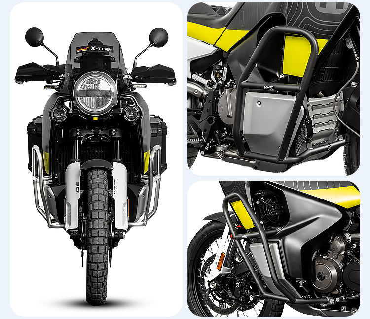 Safeguard your Husqvarna Norden 901 (2023+) with the Crash Bar system. Engineered from robust 304 stainless steel and developed using original vehicle data, this crash bar offers comprehensive protection for your engine and fairings without compromising the bike's sleek adventure lines.