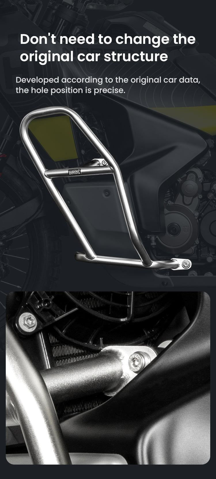 • Lossless No-Drill Installation: Features a lossless installation design that mounts directly to existing points. There is no need to change the original car structure or drill holes, preserving your bike's integrity.