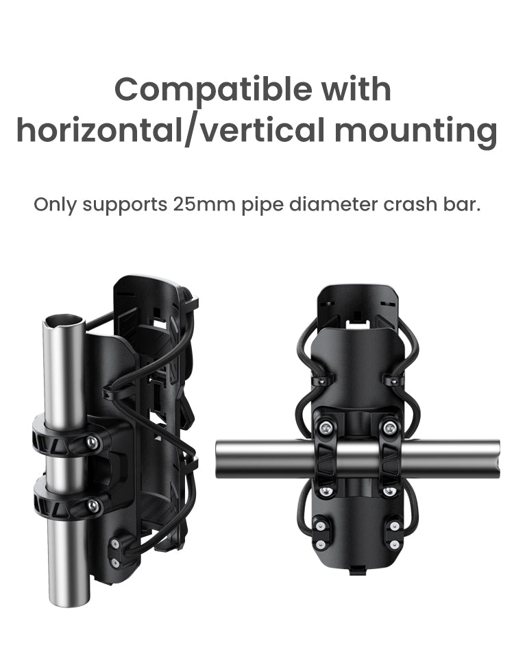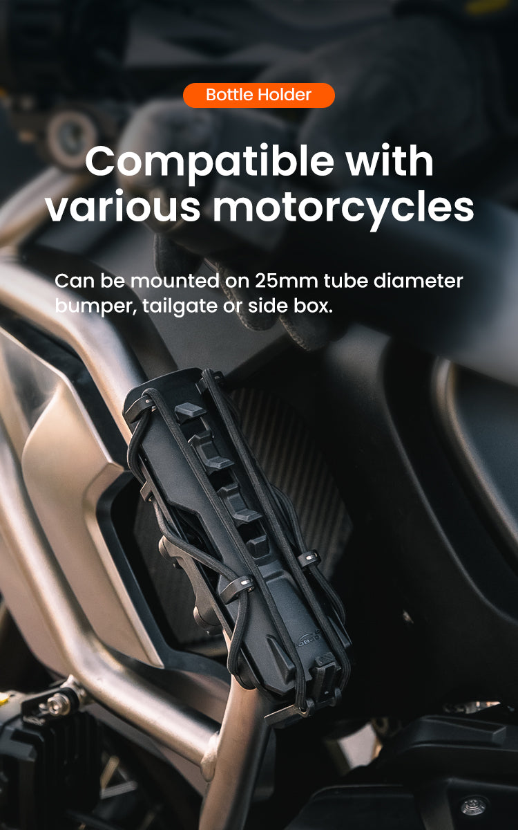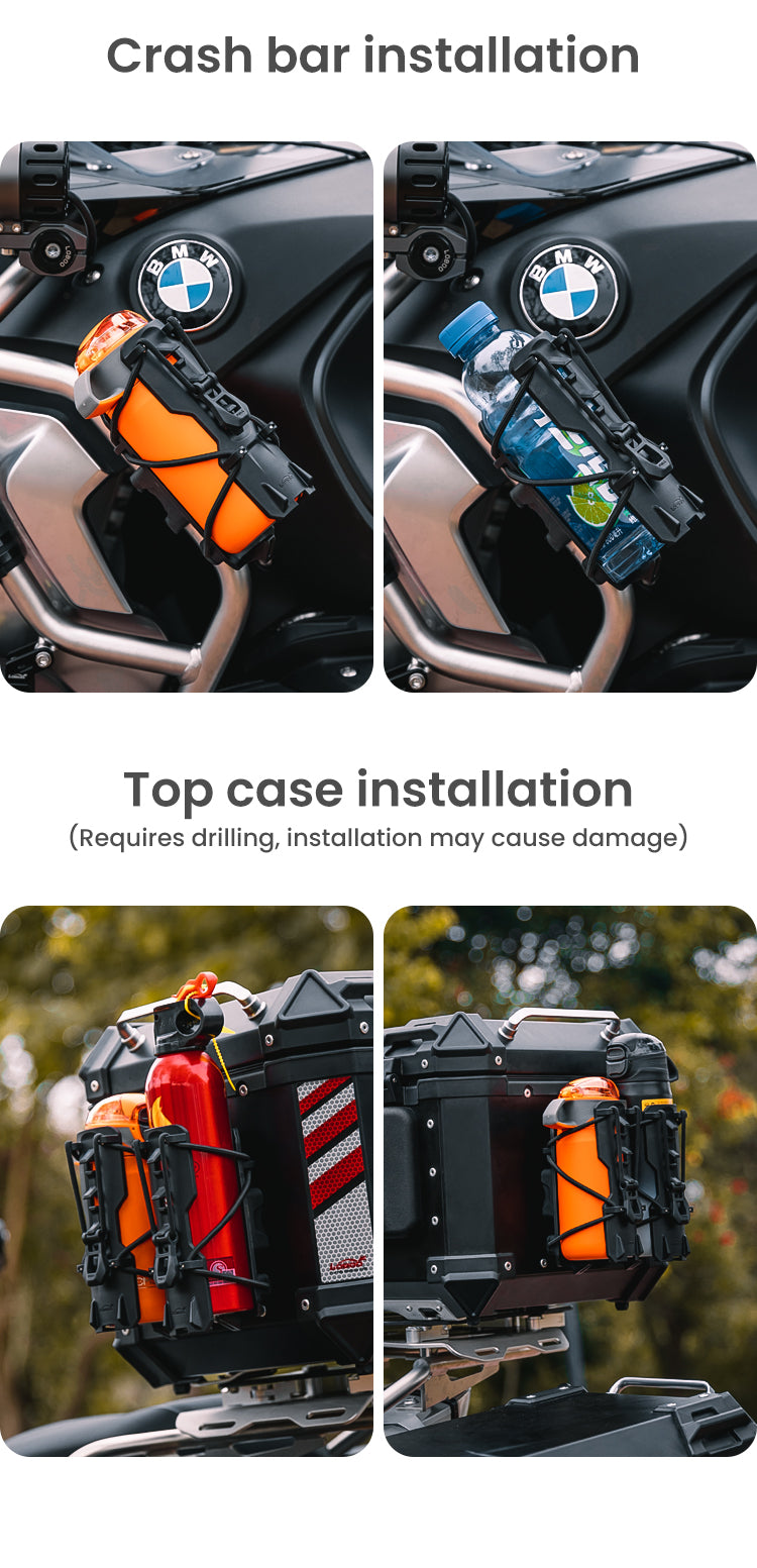 • Multifunctional installation: Suitable for a wide range of vehicle models, it can be installed on 0.98 inch pipe diameter guardrails, trunk or side boxes to meet the needs of different motorcycles, making it easier and more convenient to replenish water for motorcycles.