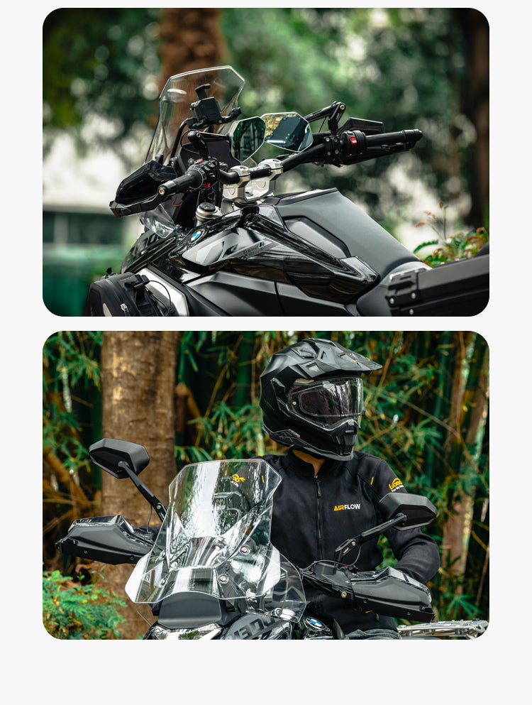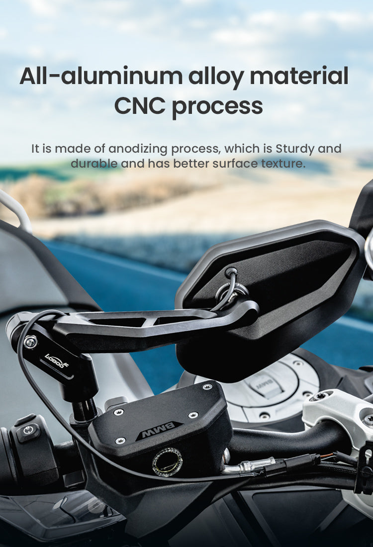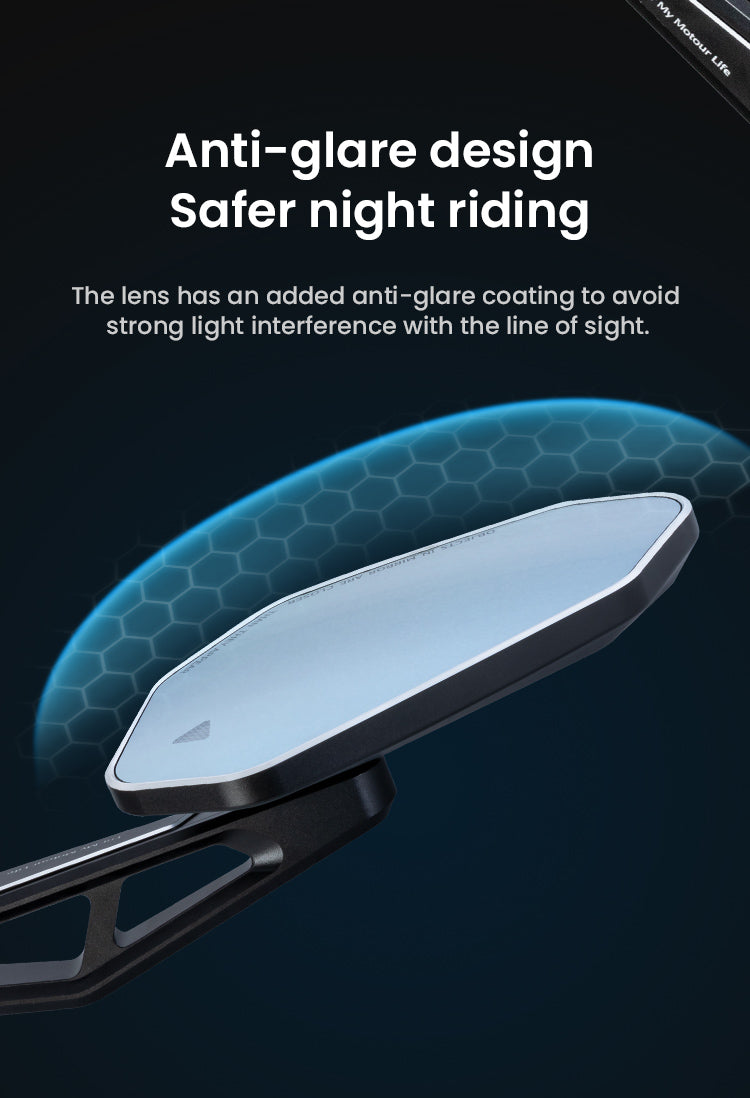 Crafted from high-strength aluminum alloy, these mirrors feature a quick-folding design that allows for easy adjustment and compact storage during off-road rides. The 1200R spherical anti-glare lens provides a wide, distortion-free field of view, ensuring superior visibility in all lighting conditions.