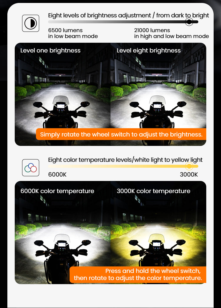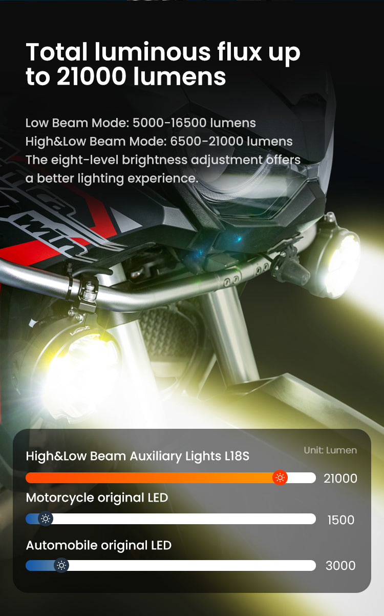 Total light flux 23000 lumens: Provides strong illumination to ensure a safe riding experience.