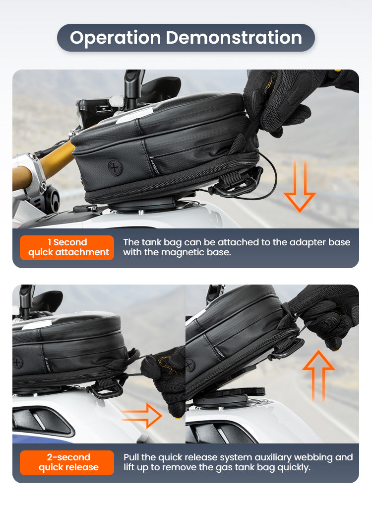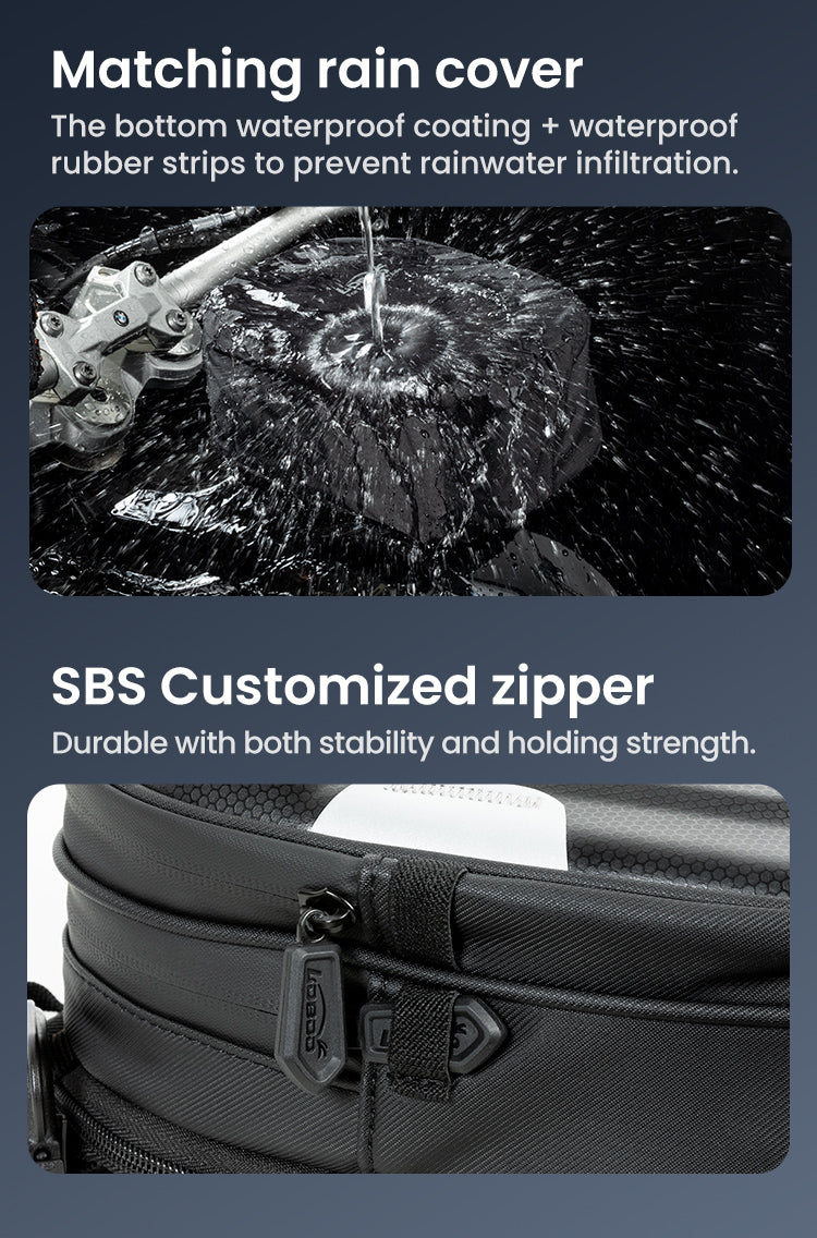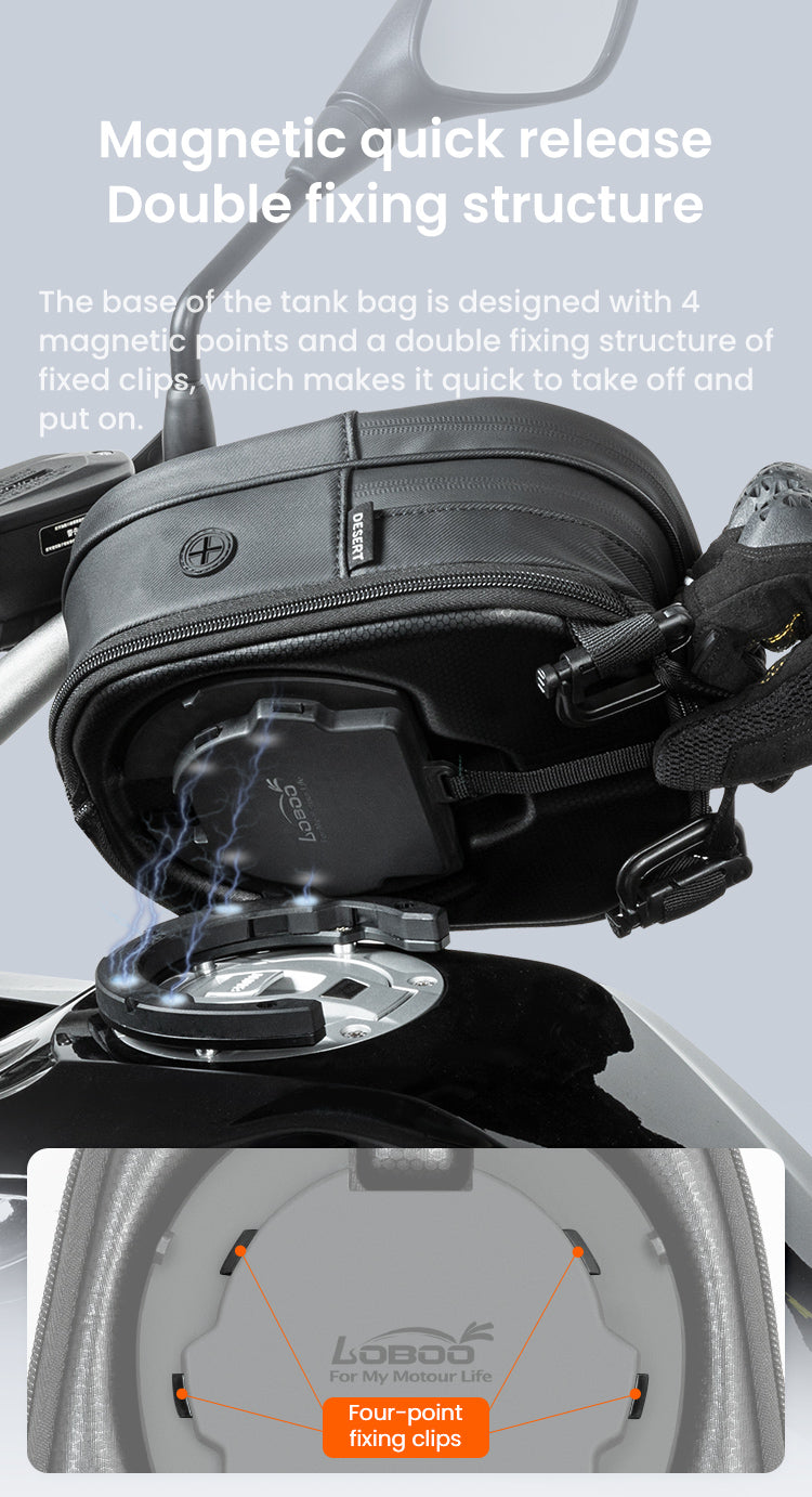 " The Tank Bag is designed to withstand the harsh weather conditions any adventure rider faces during long travels to remote areas. "