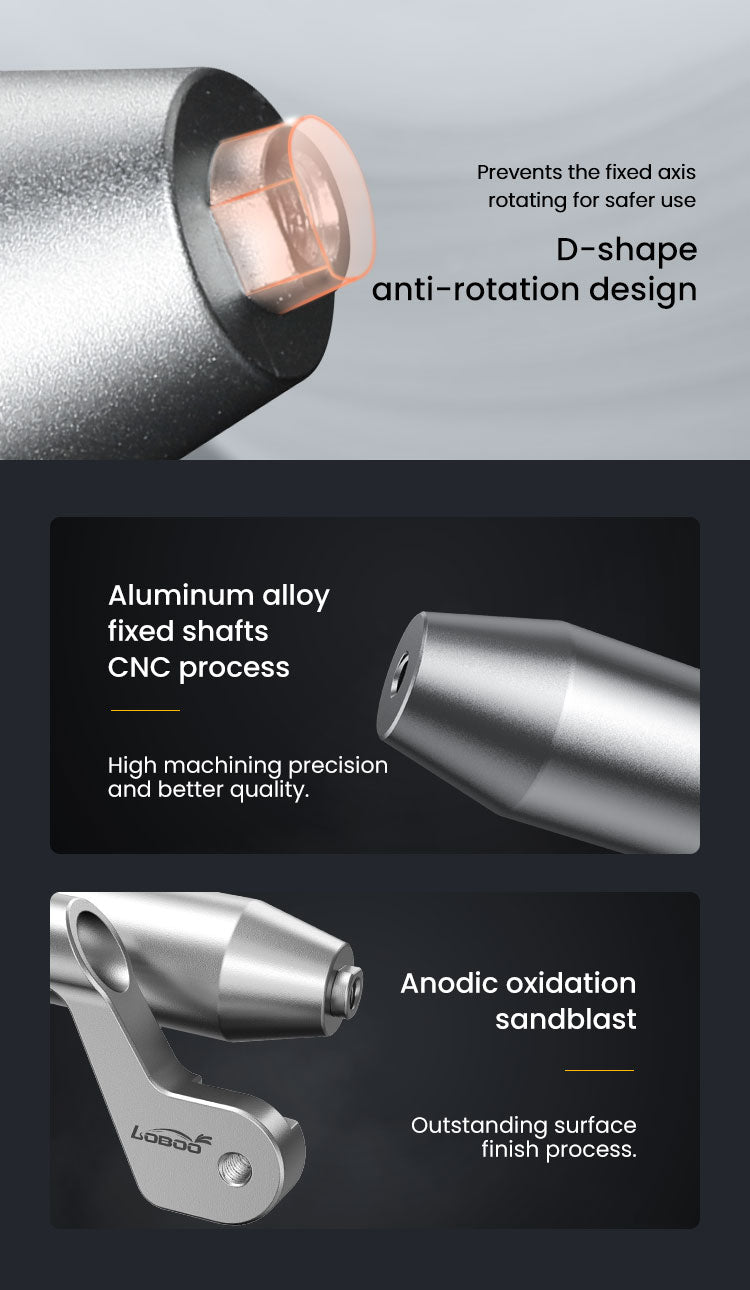 Prevents the fixed axis rotating for safer use,D-shape anti-rotation design.