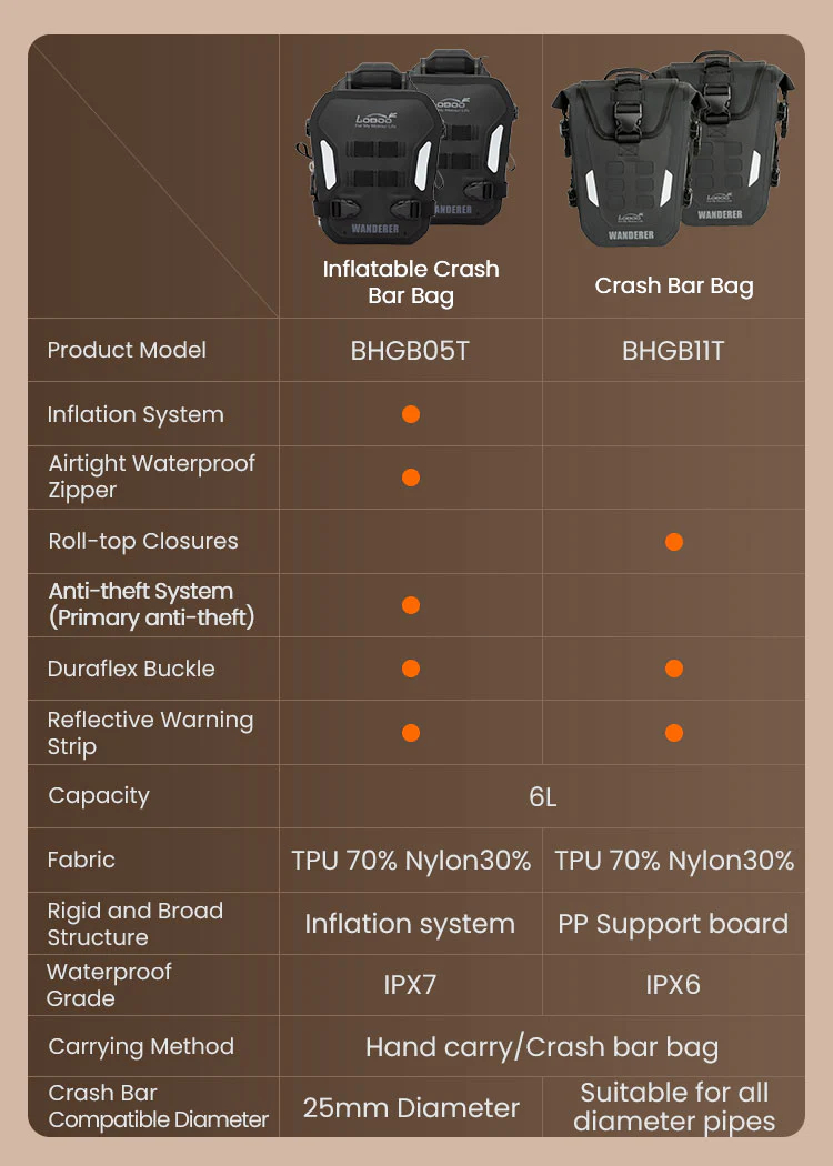 Wanderer (Inflatable/Non-inflatable) Crash Bar Bags