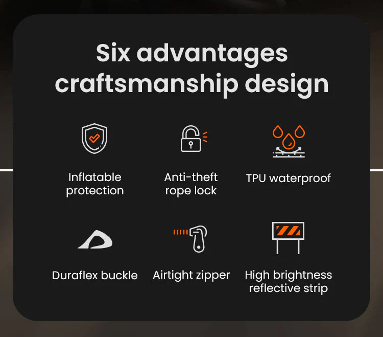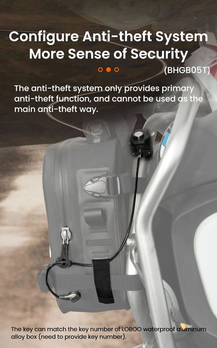With integrated reflective warning strips, these bags increase night-time visibility, enhancing safety by alerting nearby vehicles and pedestrians. The anti-theft system, complete with Duraflex buckles and unified lock compatibility with LOBOO cases, adds another layer of security for your belongings.