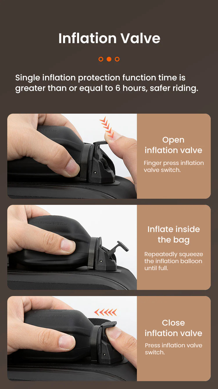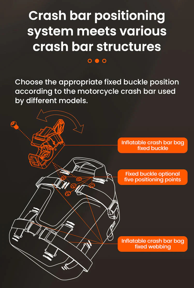 Designed with an advanced inflatable protection system, these crash bar bags can support a weight of over 300KG in an inflated state and maintain protection for no less than 6 hours. Whether enduring falls or collisions, they provide uncompromising safety for both your motorcycle and its rider.